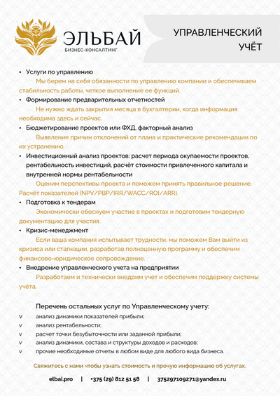 До сотрудничества с компанией Эльбай мы работали со штатным бухгалтером. Наткнувшись на множество хороших отзывов, узнали о стоимости, других условиях и сразу начали работать. Радует ответственный подход нашего бухгалтера и порядок в оригиналах документов.